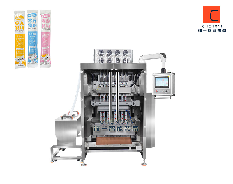 嬰幼兒輔食肉泥多列包裝機(jī)適用于嬰幼兒輔食、肉泥、寵物零食、貓條等肉泥類物料進(jìn)行包裝,袋子類型是背封易撕口形式,也可以根據(jù)客戶需求可定制樣式。